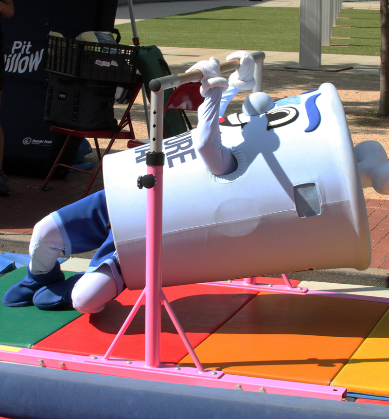 Tapper jumping on TrampolineLouisville Water’s Tapper mascot jumped on a trampoline, posed for dozens of photos, danced with kids, and even helped the children limber up and limbo down at the Louisville Family Fun Fest at Paristown last Saturday.